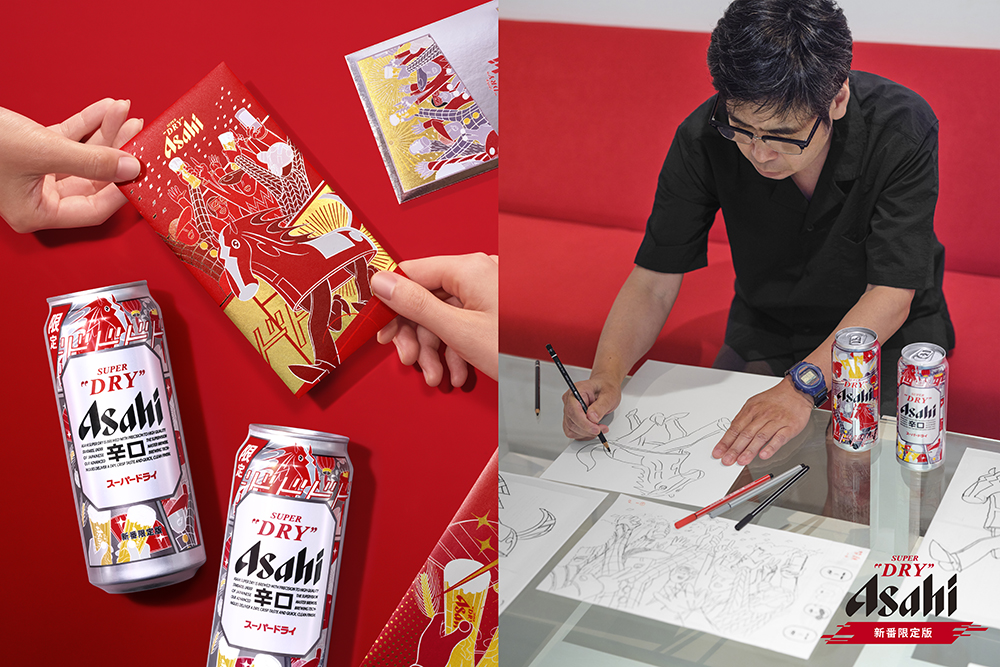 图:全球销量第一的日本啤酒品牌朝日超爽啤酒携手当代日本艺术家横山裕一跨界合作,推出新春限定包装
