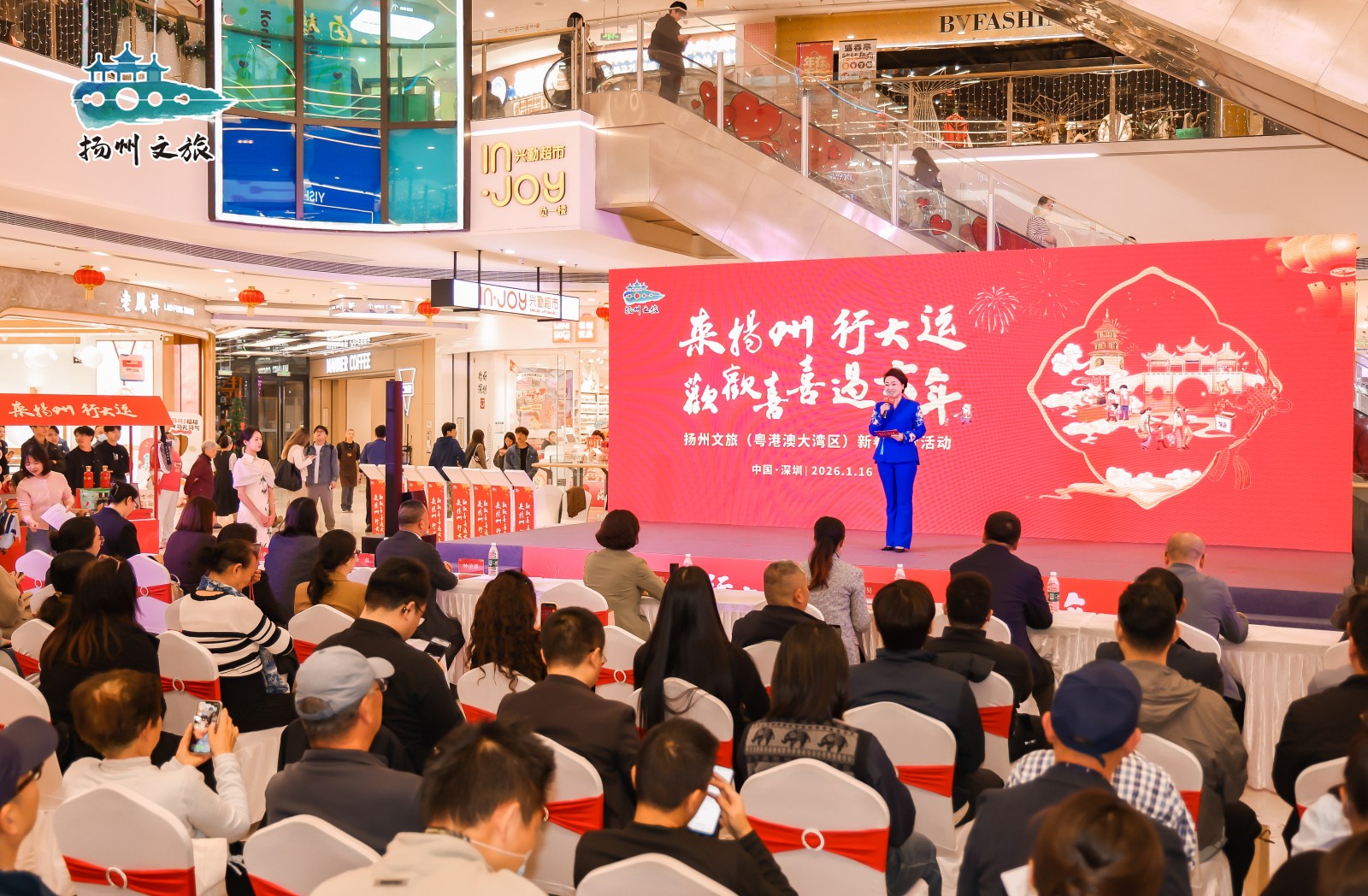 鹏城冬日暖意浓,粤扬文旅喜相逢。1月16日,由扬州市文广旅局、扬州泰州国际机场、扬子江文旅集团主办的“来扬州行大运——欢欢喜喜过大年”新春文旅推介会在深圳成功举行。活动现场,扬州以非遗展演、文旅推介、政策发布、达人分享、文旅市集等多元形式,将江南水乡温婉气韵与新春魅力全方位呈现给粤港澳居民,为即将到来的马年新春奏响粤扬文旅深度融合的序曲。