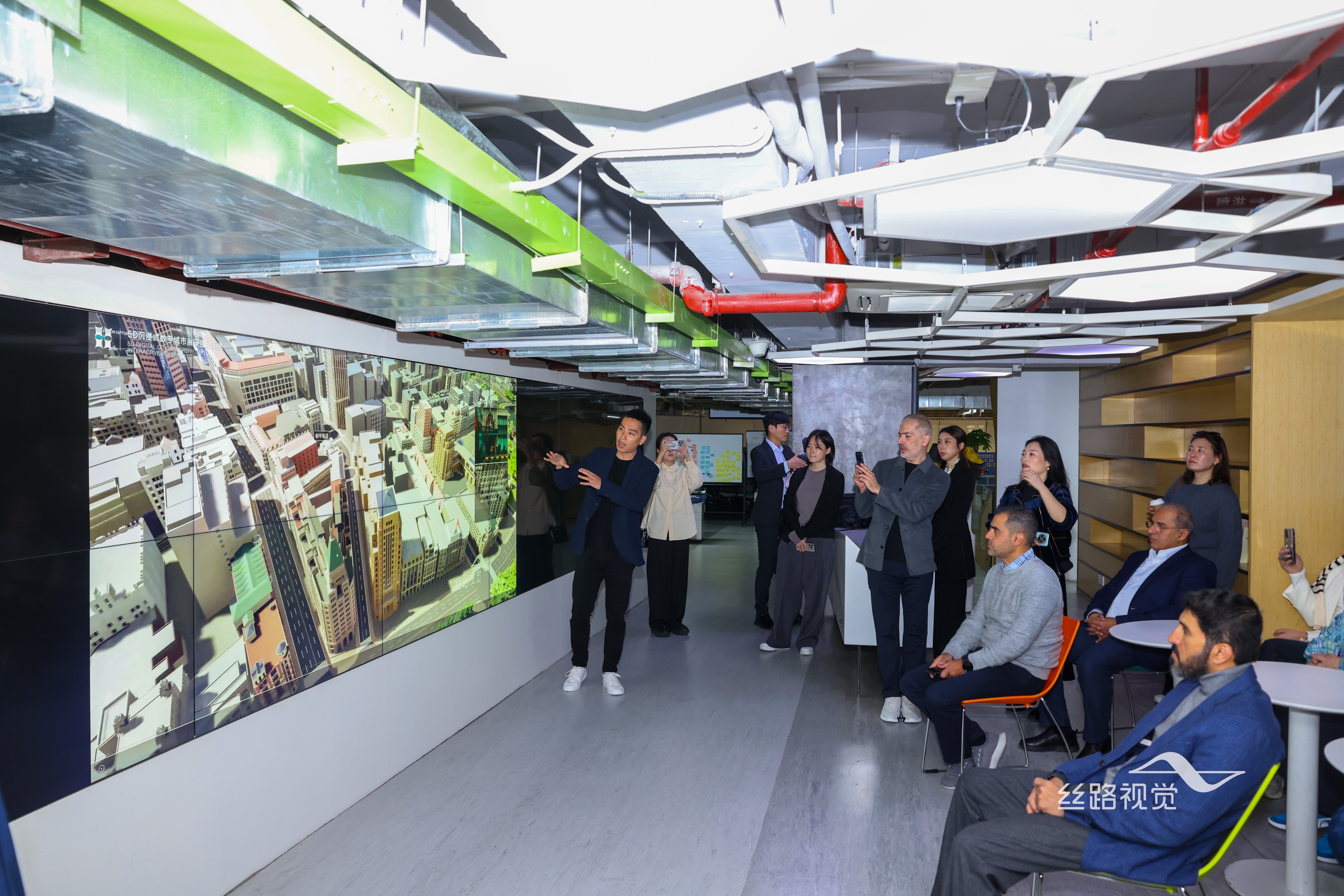 参观过程中,岳峰向代表团介绍了丝路视觉的发展历程及全球化业务布局。作为视觉科技全产业链服务商,丝路视觉正积极推动中国数字创意与技术“出海”,致力于为全球合作伙伴提供高质量的数字视觉解决方案。