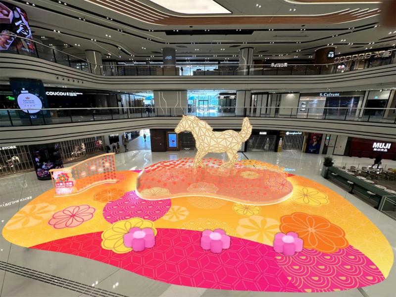 今年,香港围方商场「大围生活节2026」载誉归来,以「风车艺赏」为主题,精心打造了六大打卡场景,其中最出圈的,莫过于六米高「骏马」艺术装置。年轻人们纷纷驻足合影,并在社交媒体上晒出自己的赛博年签——「马上有Offer」、「马上有假期」、「马上发财」、「马上有涨停」……各种幽默、真诚或天马行空的填空,让传统的祈福行为变成了一场大型互动式许愿现场。