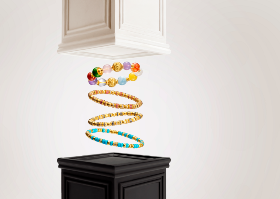 「多宝灵韵手串」则完美诠释了“多宝镶嵌”的华彩之美,它精选色彩、质感各异的珍稀宝石,依循古法智慧与现代美学进行和谐配比与编排,腕间流光溢彩,仿佛将一座微型的东方珍宝馆缠绕于手,寓意汇聚世间美好能量与福缘。