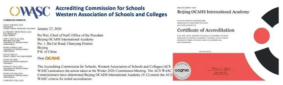 一纸认证,重若千钧;双重加冕,笃行致远。2026年1月27日,橘郡国际北京校区与深圳校区同步斩获美国西部学校和学院协会认证委员会(ACS WASC)官方认证,其办学实力、教育理念与管理体系再次通过全球最严苛的教育行业标准检验,正式跻身全球顶尖国际教育行列,为中国学子搭建起通往世界名校的优质桥梁。