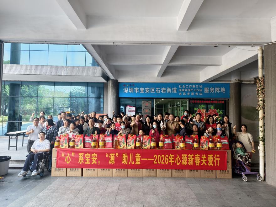 新春送暖,爱心传情。在2026年新春佳节来临之际,为切实关怀宝安区特殊儿童及困境儿童群体,传递社会温情与节日祝福,2月4日下午,“心”系宝安,“源”助儿童——2026年心源新春关爱行捐赠仪式在宝安区石岩街道未成年人保护工作站举行。本次活动由深圳市社会捐助中心、深圳市中国慈展会发展中心联合深圳市心源慈善基金会共同主办,宝安区石岩街道公共服务办、深圳市天使家园特殊儿童关爱中心协办,为辖区100户特殊儿童及困境儿童家庭送上新春关爱物资与暖心问候,用善举为孩子们的童年增添温暖底色。