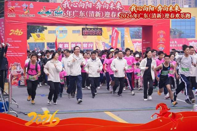 年味渐浓,美好向新。2月8日,“我心向阳·奔向未来”2026年广东(清新)迎春欢乐跑在玄真峡谷嬉水王国热力开跑。来自清远各地及大湾区周边的3000名跑友齐聚一堂,以5公里、10公里的欢乐奔跑丈量清新山水美景,用蓬勃活力凝聚城市发展力量,共赴一场新春与激情交织、运动与文旅相融的美好之约。