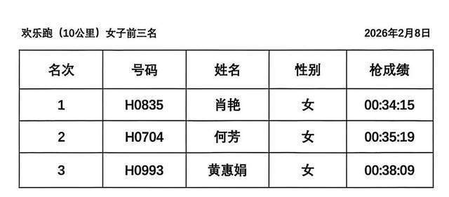 为增强活动趣味性与参与感,欢乐跑(竞赛项目)设置专项奖金,激励参赛选手奋勇拼搏、争创佳绩,以下为本次活动欢乐跑(竞赛项目)的正式成绩,详见下图: