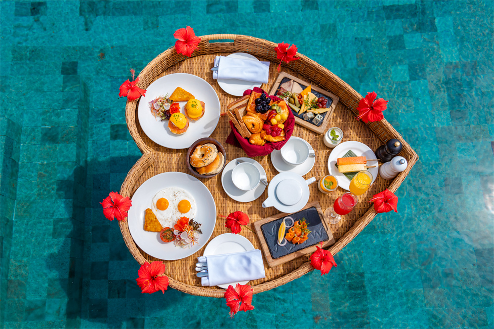 此外,贯穿春节假期的奢华水上漂浮早餐,将于别墅私人泳池中呈献,精选美食、热带水果与香槟,让每一个清晨都成为值得珍藏的假日记忆。