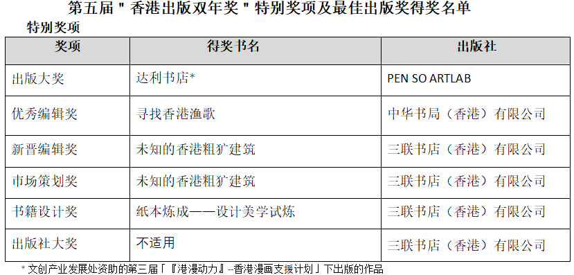 今届"双年奖"特别奖项及最佳出版奖得奖名单如后,"双年奖"更多详情载于项目网页。