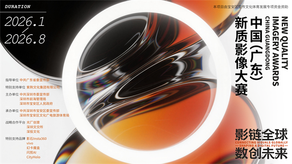 中国(广东)新质影像大赛由中共广东省委宣传部指导,中共深圳市委宣传部、深圳市前海管理局、深圳市宝安区人民政府联合主办 ,大赛以“影链全球,数创未来”为主题,聚焦 技术、内容、产业、场景、交易 五大维度,旨在系统构建“创作—生产—应用—交易”全链条数字影像生态,推动影像资源向数字资产的高效转化。