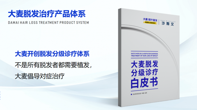 在脱发治疗领域,大麦微针植发打破单一诊疗模式,开拓了完善的大麦脱发治疗产品体系,开创大麦脱发分级诊疗体系,提出“不是每一位脱发患者都需要植发”的科学诊疗理念,针对雄激素性脱发、女性型脱发、斑秃、产后脱发等不同类型的脱发病症及头皮亚健康问题,提供个性化、精准化的治疗方案,兼顾治疗效果与患者体验,实现脱发问题的全周期干预与改善,填补了毛发医疗领域分级诊疗的市场空白。
