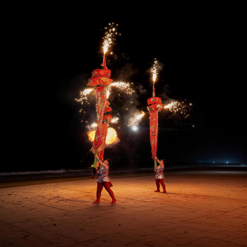 五一,小梅沙海滨乐园将推出“赤马烈焰狂欢纪”,首次在深圳海边呈现传统非遗火焰技艺与马术表演融合演艺,带来极具视觉冲击力的沉浸式演出。现场将轮番上演火虎表演、火扇表演、马上火壶,与非遗火中幡表演,火焰与技艺交织,力与美碰撞,尽显非遗文化的独特魅力。同时,专业马术团队带来精彩马术表演,骏马奔腾、技艺精湛,为游客呈现一场震撼的视听盛宴。