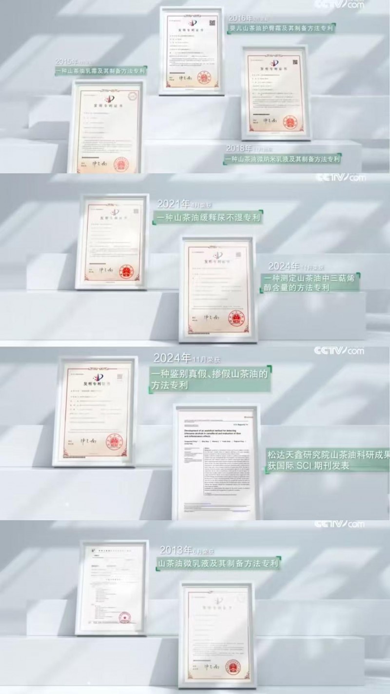 天鑫研究院是松达设立的省级研发机构,建有博士后流动站。过去13年中,松达围绕山茶油累计获得7项中国发明专利*,其中包括三萜烯醇含量的检测方法,以及通过三萜烯醇鉴别山茶油真伪的专利技术。