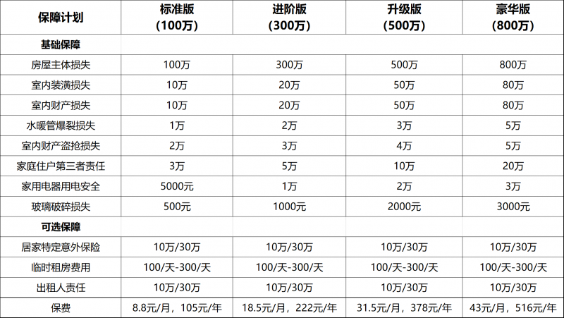 这款产品主打“低成本、高保障”,最低每月仅需8.8元,就能获得100万的房屋保障。