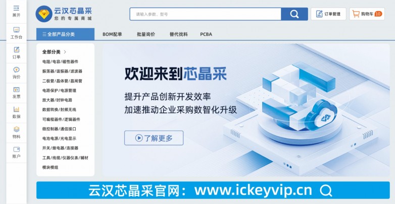 云汉“芯晶采”整合5000万以上电子元器件型号数据,完整覆盖型号参数、生命周期、可采购性等信息,并可提供从选型、替代、配单、成本核算到PCBA的一体化开发服务,全面支持企业研发创新,缩短产品从设计到量产的全周期。