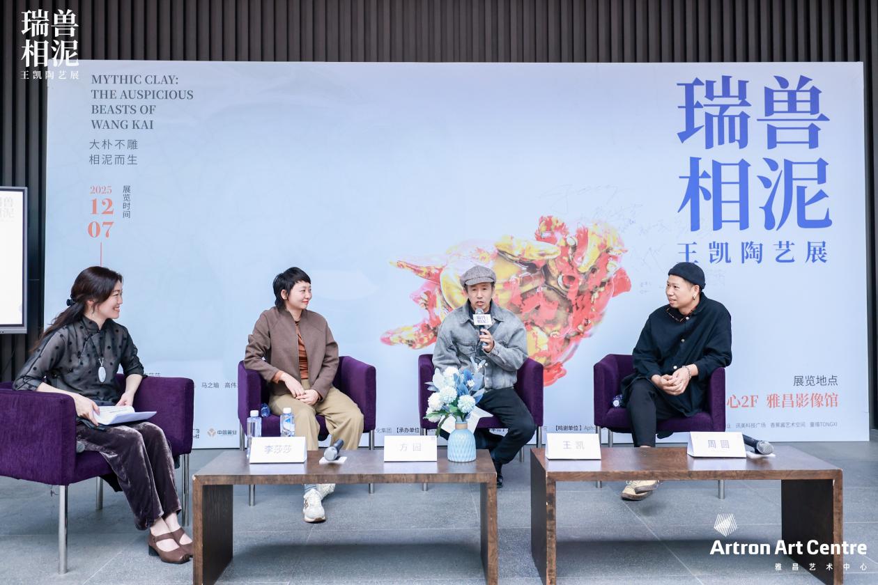 导览结束后,王凯先生还与方园女士、周圆先生、李莎莎女士开启一场深度对谈沙龙,从陶艺创作、文化传承、艺术表达等多个维度展开交流,为现场观众带来专业且多元的艺术见解。