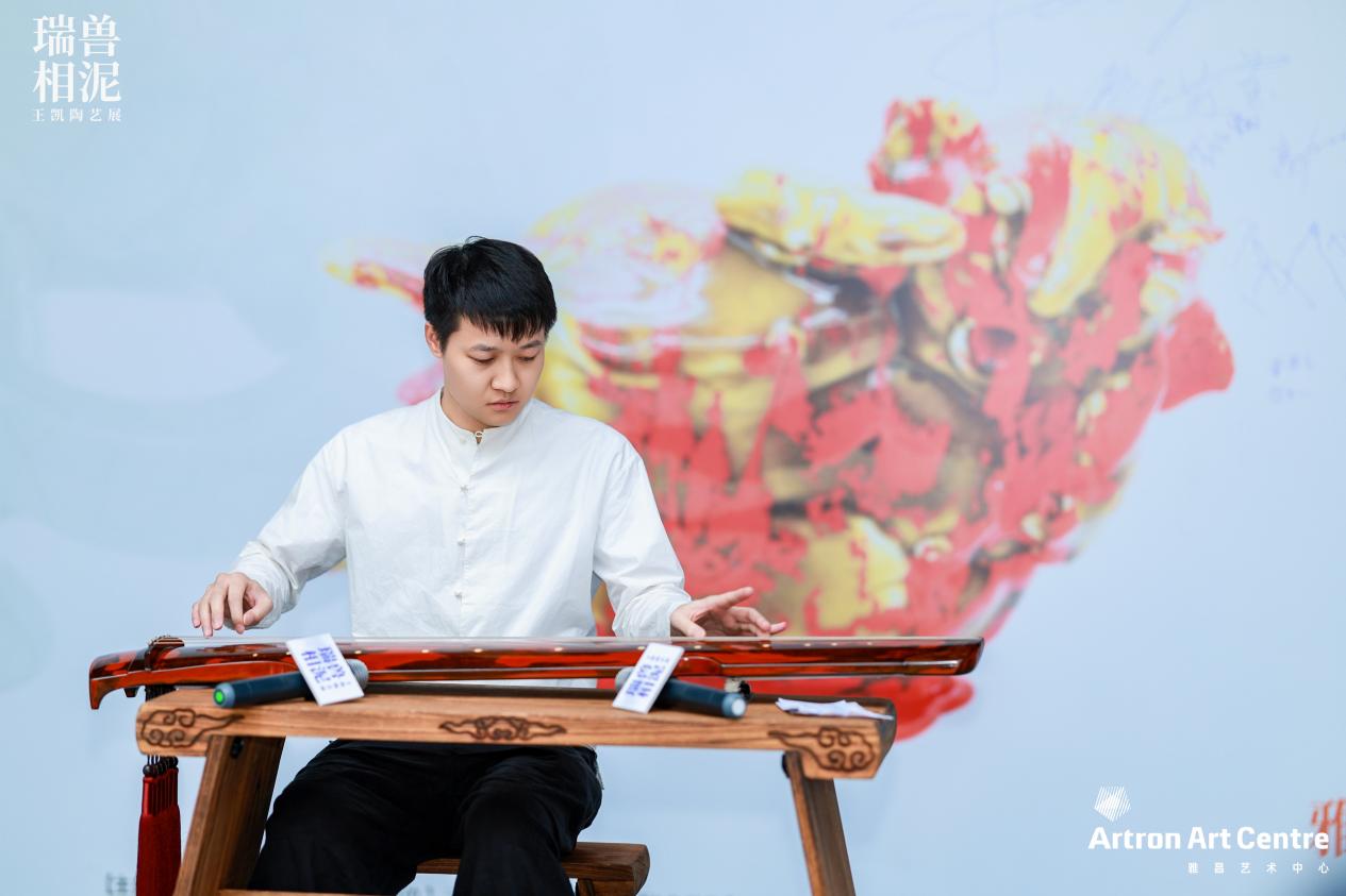 开幕式还特别设置了古琴演奏环节。留白书社创始人、古琴艺术浙派姚门第三代传承人郭伟程先生现场献奏,悠扬琴音将陶塑的凝固之美与音律的流动之韵相融合,为现场嘉宾营造出沉浸式的东方艺术氛围。