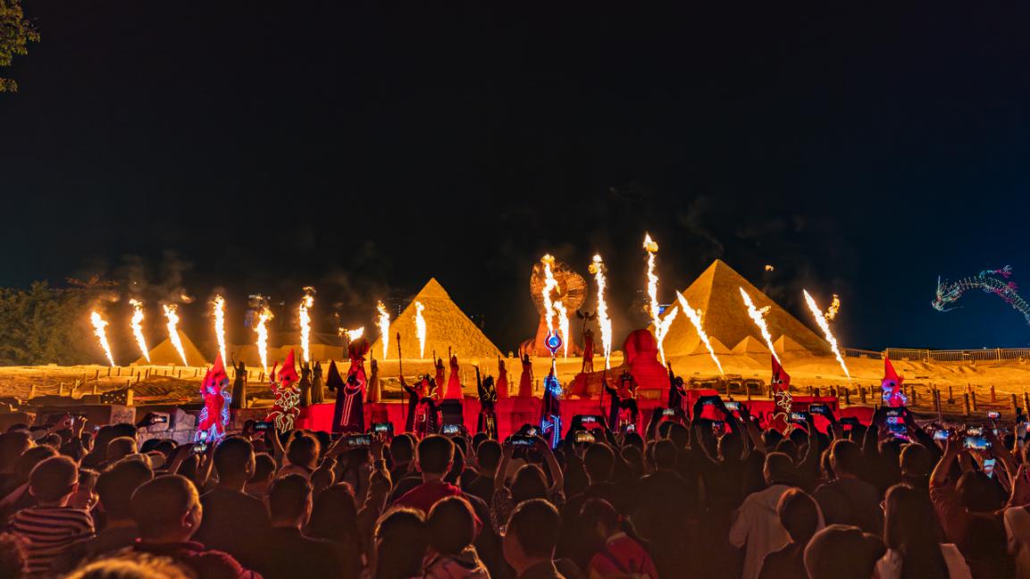 非遗与国际演艺碰撞,活动现场火爆。春节期间的深圳世界之窗园区内人气爆棚,各项特色活动精彩纷呈。非遗项目受到热捧,年味十足,园区内舞龙舞狮等传统非遗项目天天上演,升级版的夜光舞狮与炫酷舞龙更是成为夜晚的焦点,引得游客阵阵喝彩。作为宣传重头戏的新演艺《埃及艳后》 成为春节假期的“王炸”,这部融合了古埃及文明与未来科技的科幻实景剧,以其震撼的视听效果吸引了大批游客观演;世界文化史诗系列开篇巨制《拿破仑传奇》也新春精彩继续,为游客带来沉浸式的观演体验,其中的“科技烟花秀”更是登上短视频平台热点。