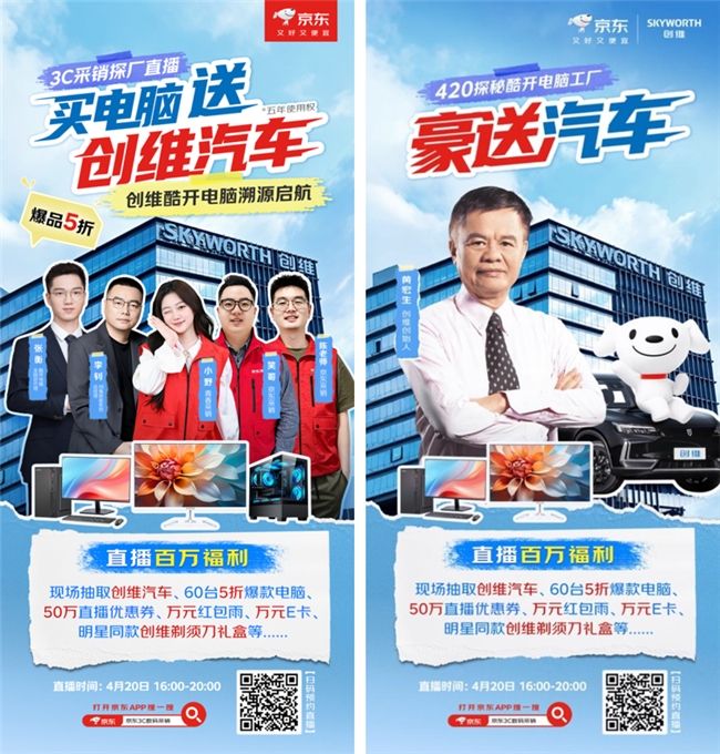 4月20日16:00至20:00,京东3C数码采销将走进创维酷开电脑工厂,携手酷开工厂负责人共同开启一场“420探秘酷开电脑工厂”的溯源直播。为期四小时的直播中,京东3C数码采销将从无尘车间走到装配包装线,首次向消费者全景展示一台一体机从零件到成品的完整诞生过程。这既是一场硬核的工厂探秘,也是一次诚意满满的福利放送。创维创始人黄宏生将为观众们介绍创维的历史和技术优势,创维智能系统技术总经理李钊将亲临“京东3C数码采销”直播间现场送出百万直播福利,包括一辆创维汽车、60台五折爆款电脑、50万元直播优惠券、万元红包雨、万元京东E卡,还有吴磊联名剃须刀礼盒等超多好礼,只等你来直播间解锁。