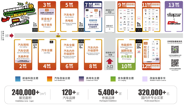 本届综合改装展区围绕三大年度财富线索:新能源汽车全系升级方案、汽车个性化热门升级方案、海量“专精特”新品发布招商,展品涵盖内外改装、汽车全膜、性能部件、轮胎轮毂、汽车电子、汽车影音、汽车照明、洗美养保、汽车精品、新能源充电桩、汽车空调、跨境电商等12个改装品类。进一步深化汽车改装产业全链条发展,展示最新改装产品与最全改装方案。